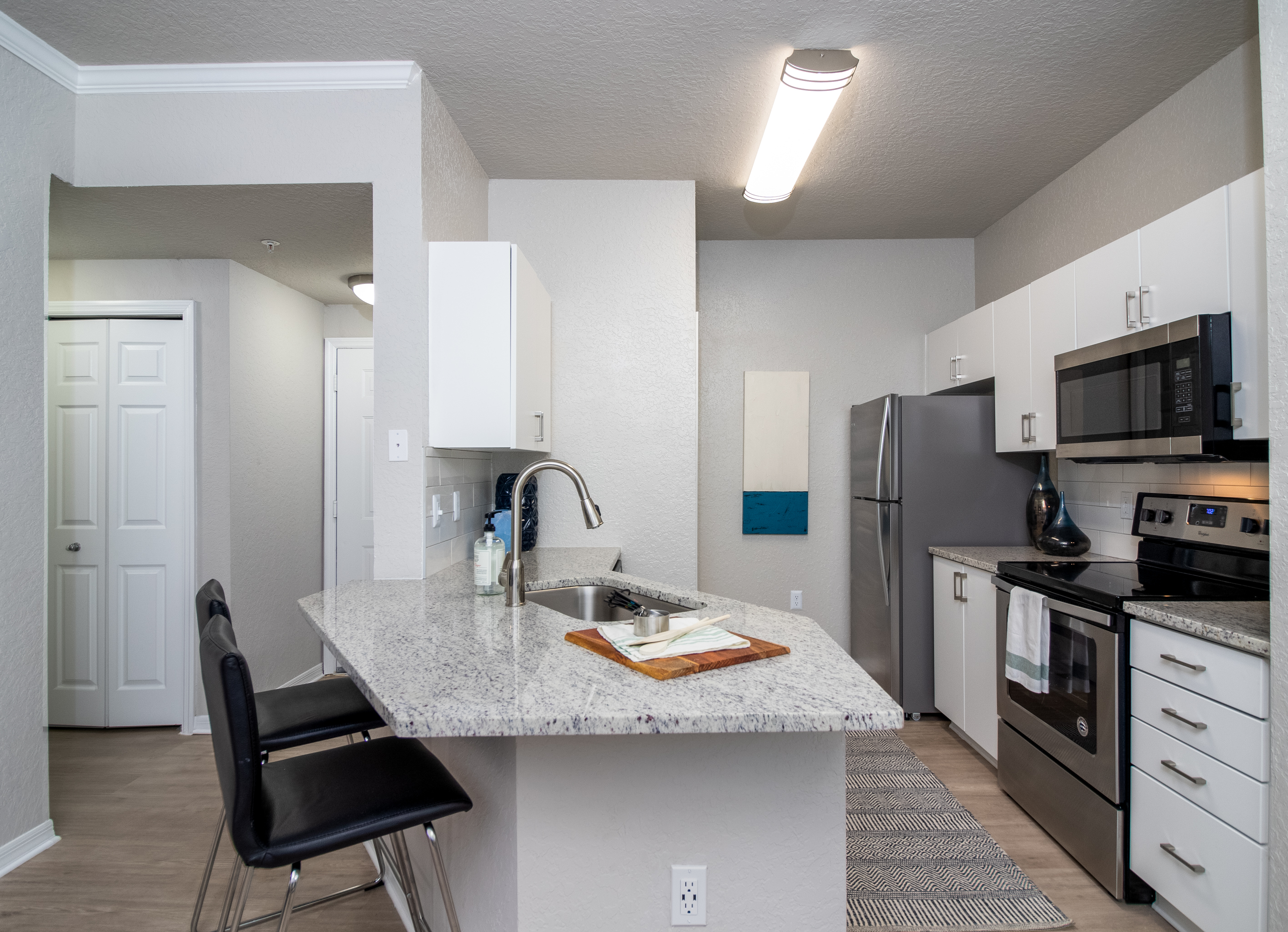 Tour our Brandon apartments virtually with our expansive photo gallery! Inside each one-, two-, and three-bedroom renovated apartment home at Lucerne at Lake Brandon, you’ll find must-have features like gorgeous hardwood-style flooring, spacious kitchens, walk-in closets, ceiling fans, and screened-in patios and balconies. In addition, take a peek at our community amenities, including our refreshing resort-style pool, fitness center, clubhouse, playground, garage parking, tennis court, and more. Contact us today to schedule a tour and find your new apartment in Brandon!