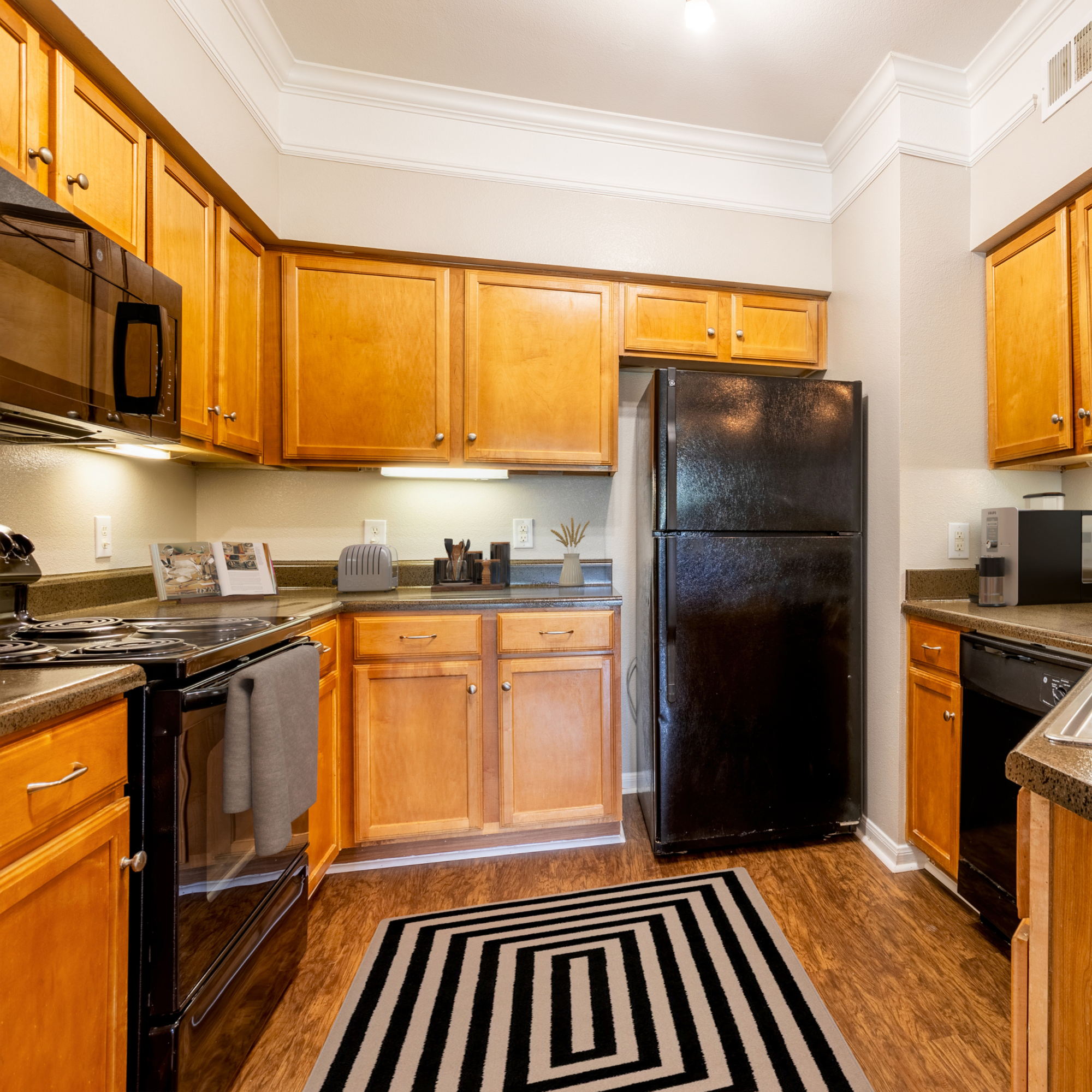 Our apartment community offers beautifully designed 1-, 2-, or 3-bedroom apartments for residents to call home. In addition, our gated community is landscaped and offers amenities such as a refreshing swimming pool with a sundeck and a private off-leash dog park. Browse through our photo gallery and virtual tour and contact us today to schedule a tour.